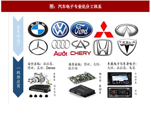 传统汽车电子工业已高度分工化,Tier 1厂商在产业链中拥有极强的主导权。自上世纪80年代起车企开始打破自制配件模式,实施整车与零组件供应分离。目前主要一线Tier 1大厂都是由整车厂的零组件业务剥离而来。发展至今,汽车电子已高度分工专业化,产业链包括一级供应商、二级供应商、整车制造、汽车服务维修等主要环节。在当前专业化分工体系下,一级供应商,即Tier 1供应商拥有极强的主导权,掌控着上游二级零组件的采购与定价。国内汽车工业起步晚,自主品牌车厂影响力较小,还没有成长出优质Tier 1厂商,市场基本被博世、大陆、电装等国际寡头垄断。